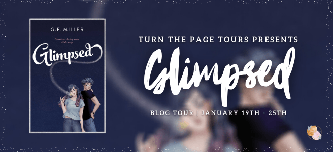 For this tour, we have THREE (3) separate giveaways! Up for grabs, we have ONE (1) signed copy of Glimpsed by G.F. Miller (available to US only), TWO (2) EXCLUSIVE chapters from Noah’s POV, and a Skype or Zoom visit with the author (both available to INTL)! This will run from January 19th to January 26th at 11:59 PM CST. To enter this giveaway, click the link below!