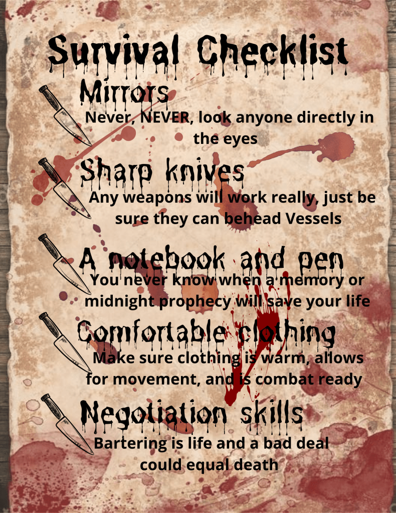 Before we get into the review, though. It’s important to figure out if you’re ready. I’ve come up with this handy survival checklist, so you can be sure you’re going in 1000% prepared. I mean, sure, it’s only a story. But that’s how the Crimson started. As a story…