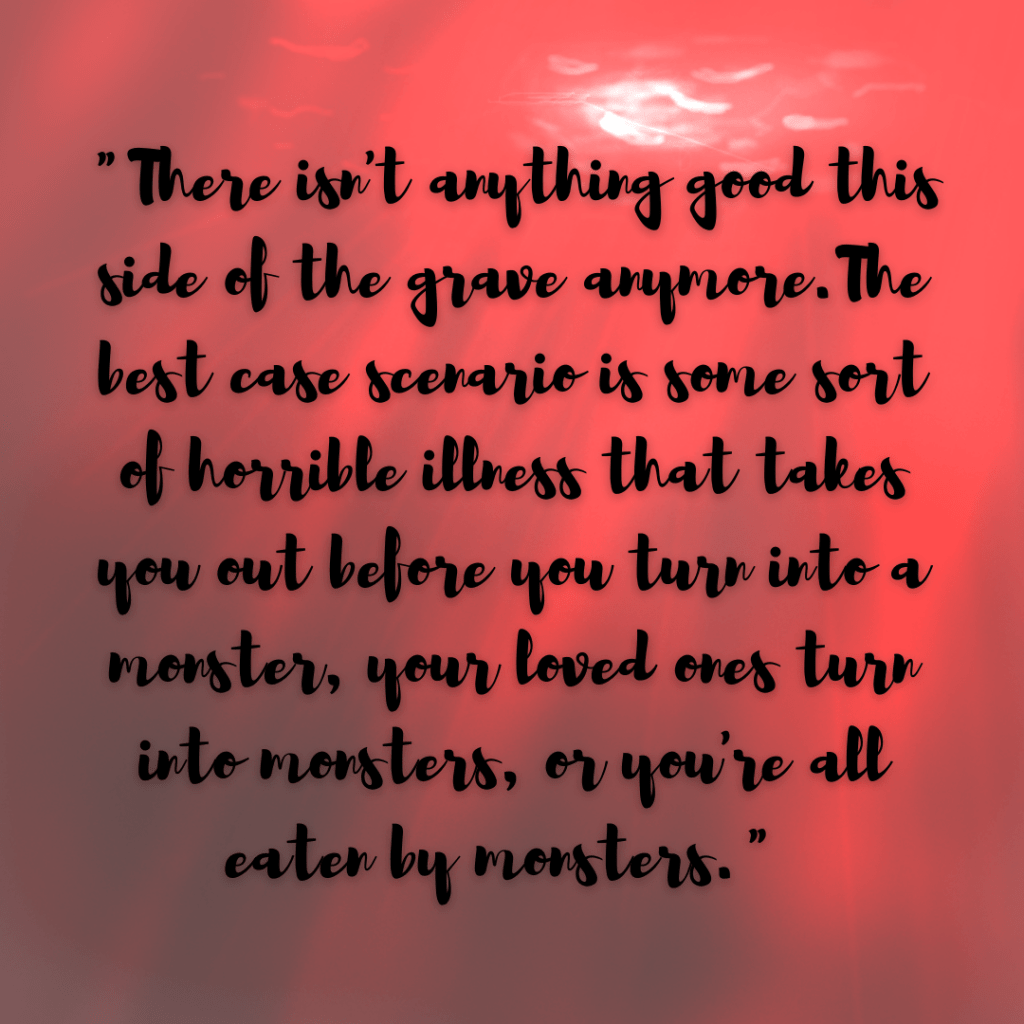 It’s the end of January and I’m closing the month out with a BANG (not a whimper). It was a weird month after a weird year, and something tells me it’s going to be a wild ride from here on out. So, featuring a dystopian with a wild twist on zombies focused on survival felt very fitting. Plus, look at that cover. It’s screaming for you to look at it, but beware––eye contact is NOT recommended from this point forward…
