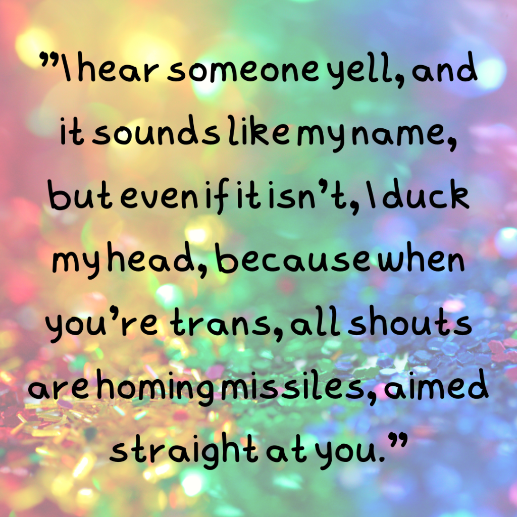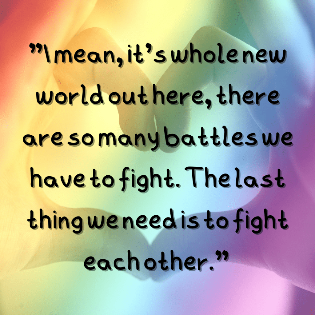 Because all of this feels so real, there are some issues readers should know about. The racism, homophobia, and transphobia on the page is heartbreaking and cruel. I don’t say this as a criticism. It’s actually the opposite. There are levels of acceptance and tolerance, and even from the people we care about most, there can be a struggle to bridge the divide when it comes to misunderstandings and intentions.